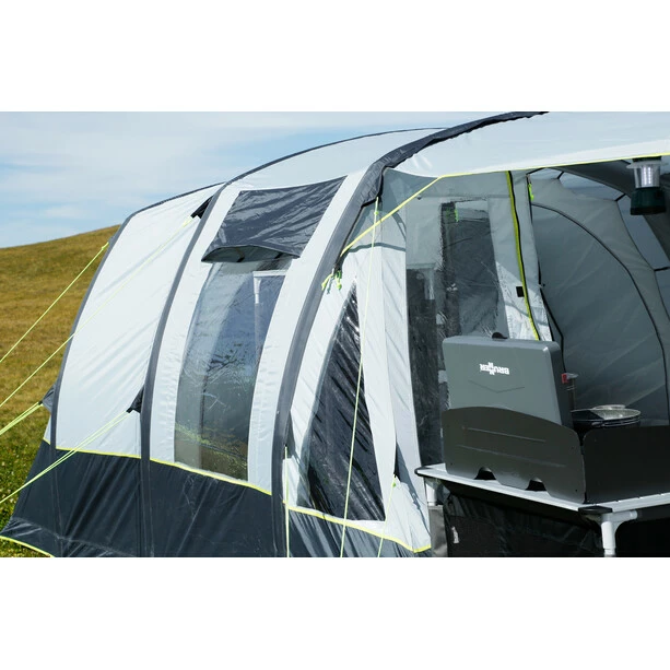 Large family tent with A.I.R. Tech air frame (3 airpoles)Â and completely sewn-in floor made of durable PE.