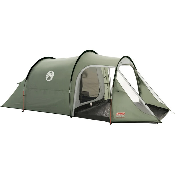 The Coastline Plus line tents are ideal for all short trips. They offer generous storage space and large PVC windows for good light allowance. The tents are quick and easy to erect and have a robust construction. WeatherTec+ SystemWhen the weather is not playing along, the tent must remain dry inside for optimal comfort. Therefore, the Coleman tents are equipped with the WeatherTec+ system. This system has been further refined over the years and combines various tent features, such as Water protection on zippers, welded tent corners and floors, weather-resistant materials or optimised pole structures.