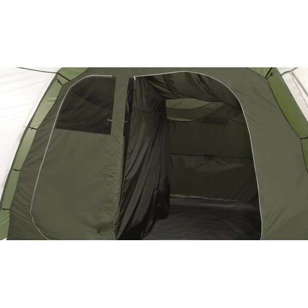 Sleeping five in a large inner with twin doors and hanging divider, the Huntsville 500 tunnel design has smart colourways with pre-angled poles for ample headroom and a spacious living area with large windows and main doors with insect-proof mesh; a rear ventilation panel and front vents plus mesh panels on the inner doors ensure excellent air circulation. A full-size toggle-up bathtub groundsheet can be detached easily for convenience and cleaning.