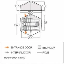 - Outer tent material: 100 % Recycled Polyester Ripstop 70D, 85 g/m², coated with polyurethane, water-repellent with FR treatment