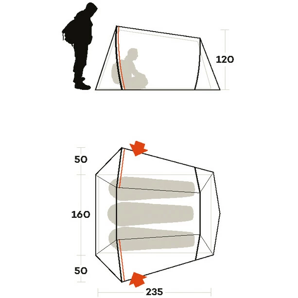 - Tent pitching without inner tent, with a weight of 1.5 kg