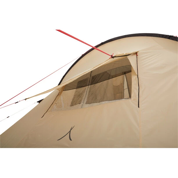 Helena 3 is a tunnel-style family tent with extraordinary sense of space and two separate sleeping compartments – one sleeping two people, the other offers space for one person or luggage and equipment. The large vestibule in front of the sleeping area has stand-up height throughout and provides room for sitting together in the evenings or during the day in adverse weather conditions. Big fly sheet vent hoods and windows with mosquito net inserts ensure proper ventilation and a good inner climate.