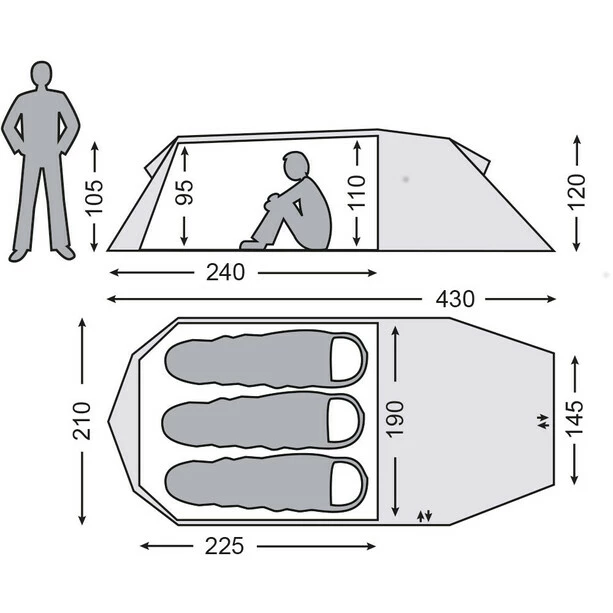 - extremely spacious 3-person tunnel tent