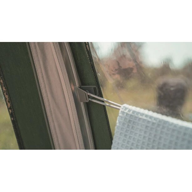 Outwell Wind Stabilizer System 10 uses a strong hook and loop fastening system as a direct attachment point for the flysheet and tent pole. An effective system which keeps the whole tent stable whatever the weather.