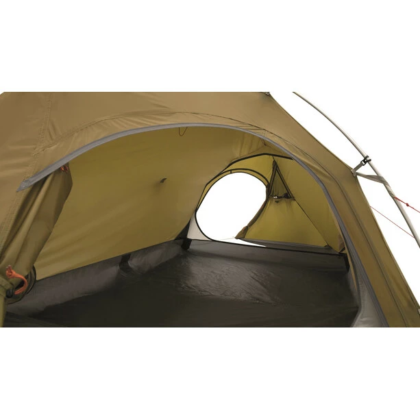 The porches have a partial groundsheet to protect content while providing ‘wet’ access where boots can be left. Each porch has a side door that folds to one side. This features a double zip so the door can be cracked open at the top for ventilation.