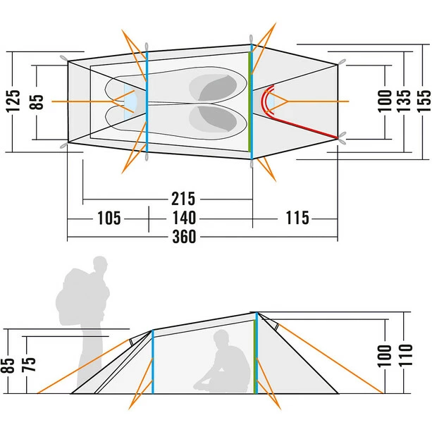 - Material outer tent: 75 den Polyester 185T, PU-coated
