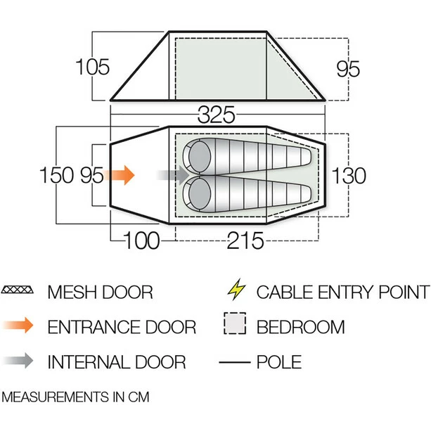 Vango’s Tension Band system is internal storm tensions. They form a power triangle and make the tent more stable (30 % more stable than conventional tents) against strong lateral or alternating winds. The clip system allows the cords to be removed if necessary and stowed in the pockets provided.