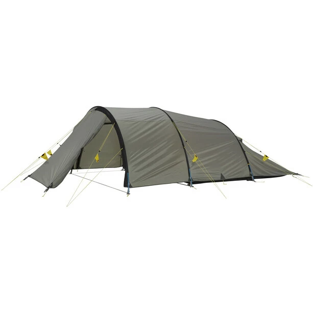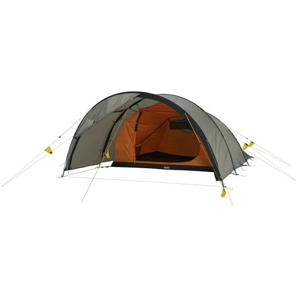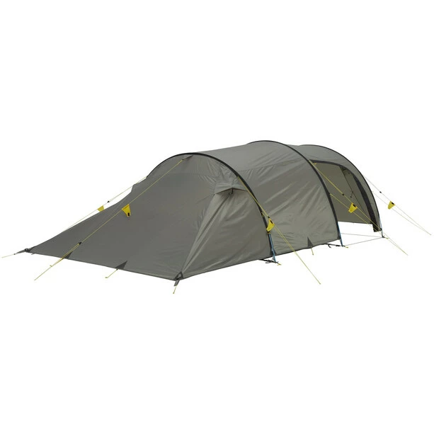 The Intrepid 4 is a 4-person tent with large rain-protected entrances and one vestibule. The three interior flat channels for the poles simplify set-up and cause less wind-resistance. The special steep shape of the vestibule lets you sit comfortably under it and use the entire space. The inner tent can hung in after the tent is set up – and removed in part or completely as desired. A large and completely coverable mosquito net door is integrated on the D-shaped inner tent entrance. Inner tent pockets and a gear loft made from mosquito netting allow quick access to small items. Both of the side entrances on the vestibule are equipped with mosquito netting and make access to gear and into the tent easy. There is also a front entrance on the vestibule that can be rolled up, which offers excellent protection from the elements when the side doors are closed. The closable vents on the inner tent, as well as four apex vents on the fly allow for optimal ventilation. The tent is very aerodynamic and thus very stable.